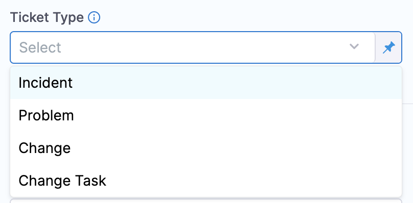 In Ticket Type, select a ServiceNow ticket type from the list.