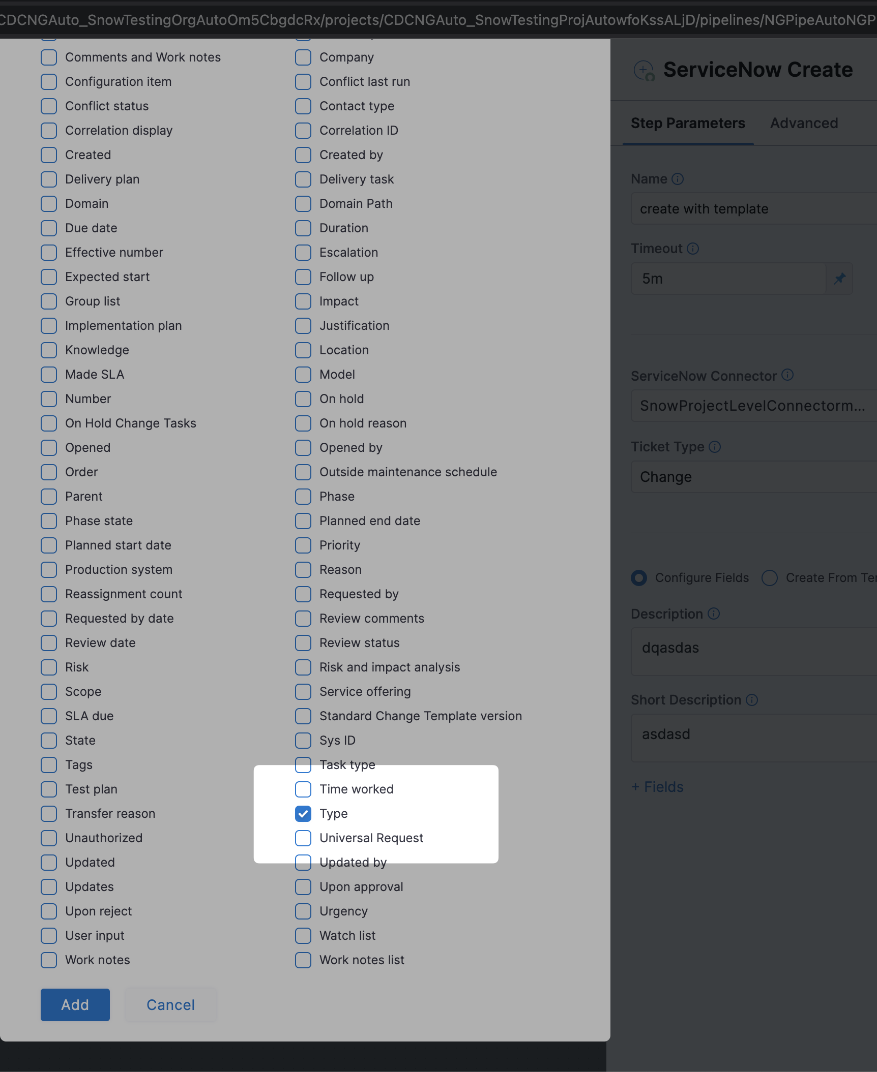 Your ServiceNow ticket is now added to your Pipeline.