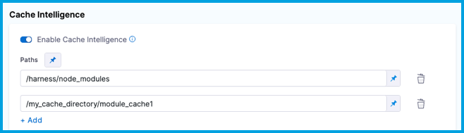 When Cache Intelligence is enabled, the cache plugin automatically detects build tools and determines cache paths, unless custom paths are specified. Cache paths are stored under <account_id>/default/path/to/directory