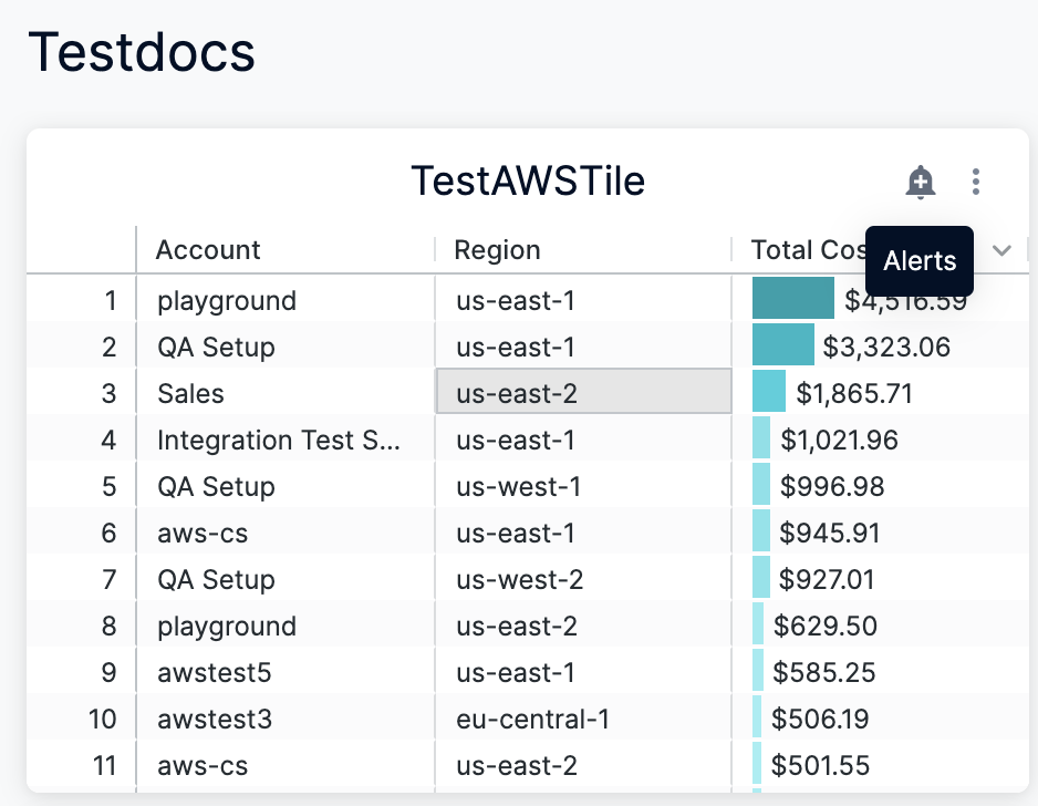 7. Hover over the bell icon that appears on the dashboard tile. A numeric indicator shows how many alerts you have created for that tile.