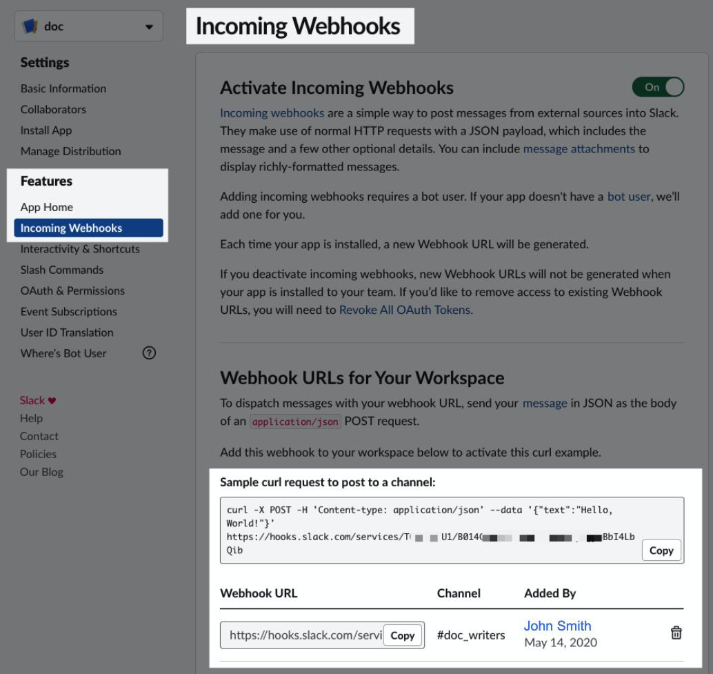 Follow the steps in Slack documentation for creating a Slack app, selecting your channel, and creating a webhook: Sending messages using Incoming Webhooks.
