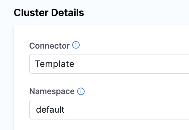 In Connector, select a connector from the list. To create a new connector, go to Kubernetes cluster connector settings reference and Add a Kubernetes cluster connector.