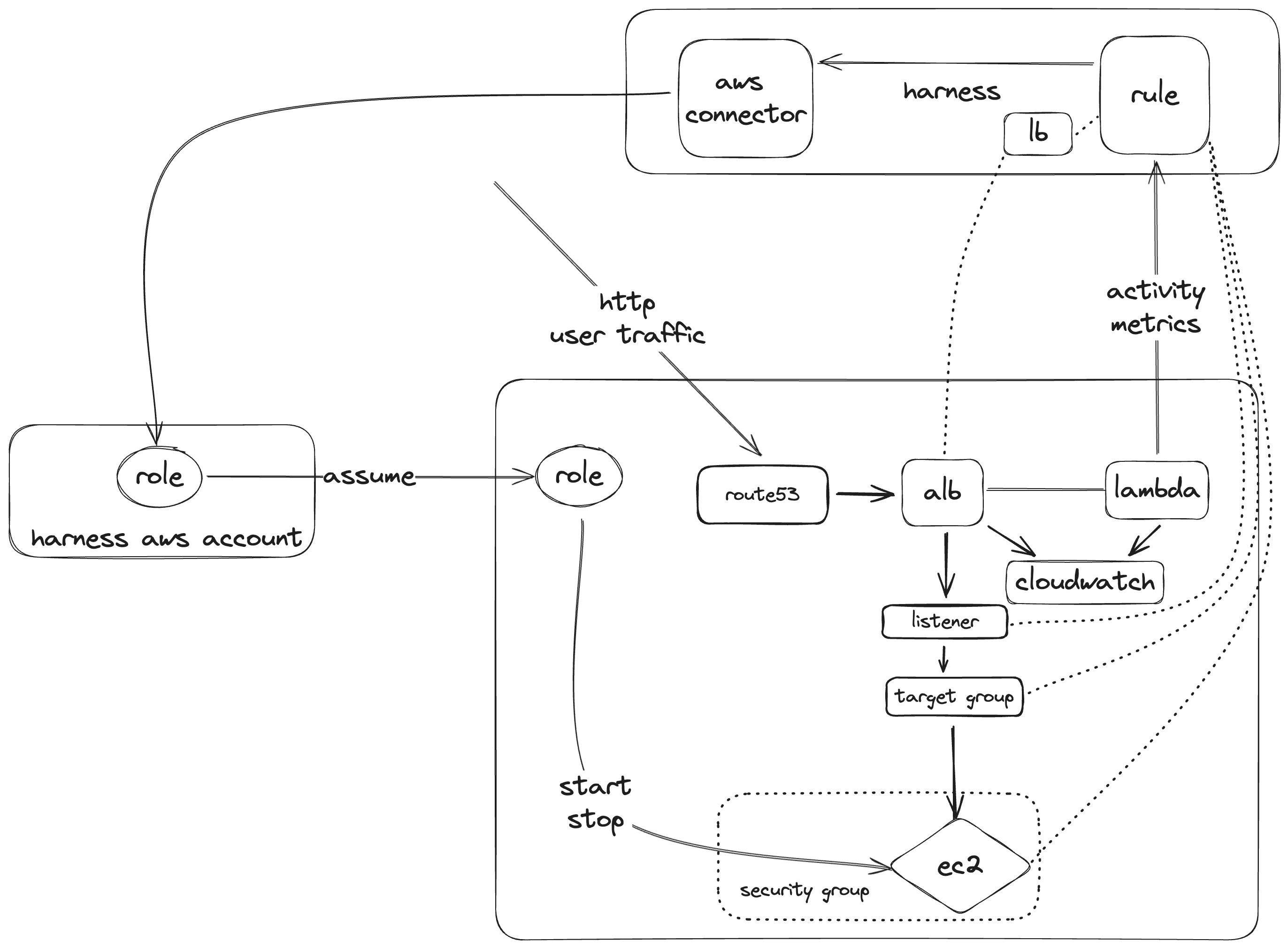 7. When cloudwatch shows no activity, the lambda updates Harness