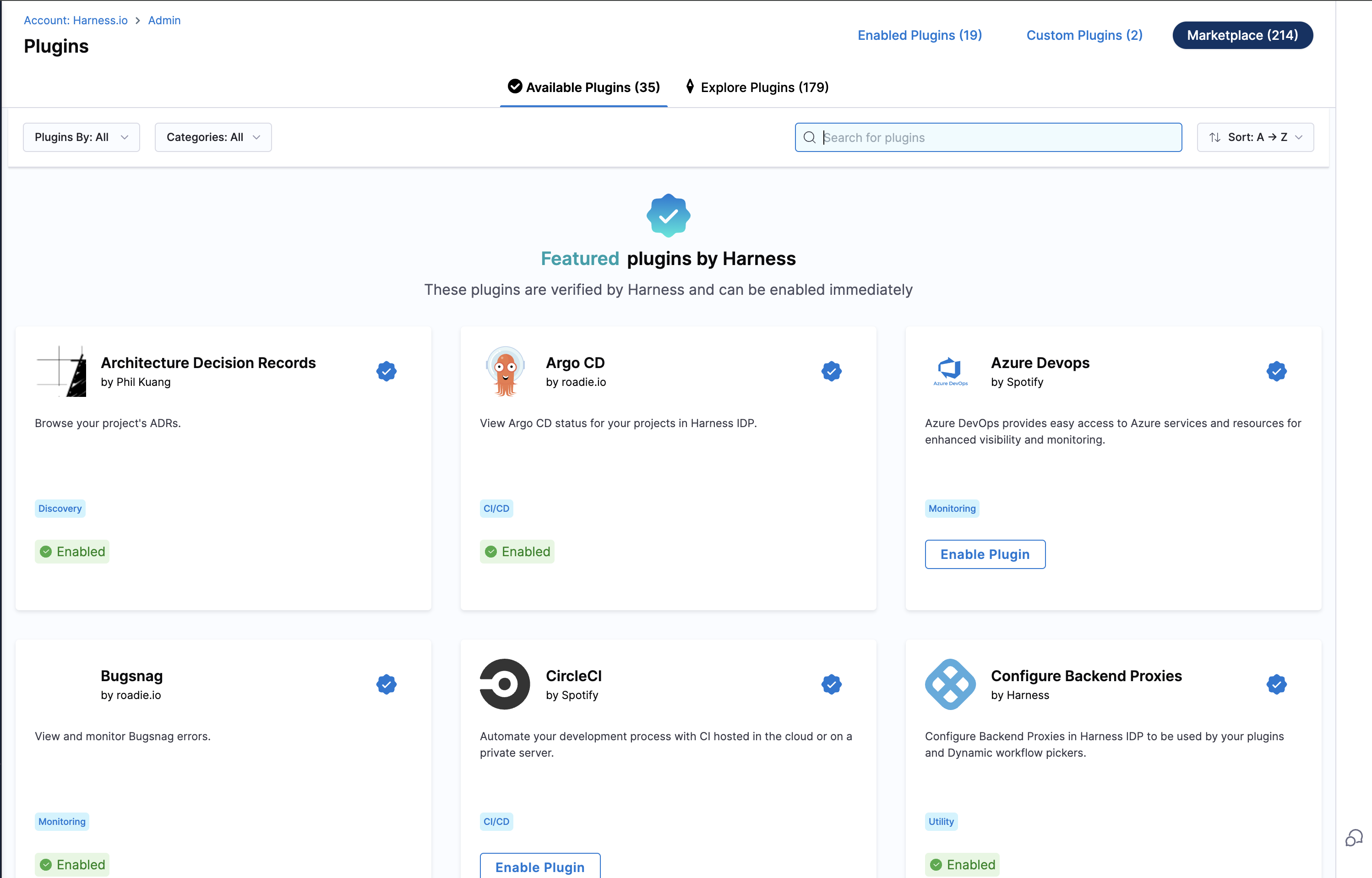 - A newer version of the Harness CI/CD plugin has been added with new annotations support. It's now possible to filter pipelines across projects and orgs. For more information, go to the plugin's readme. (IDP-758)