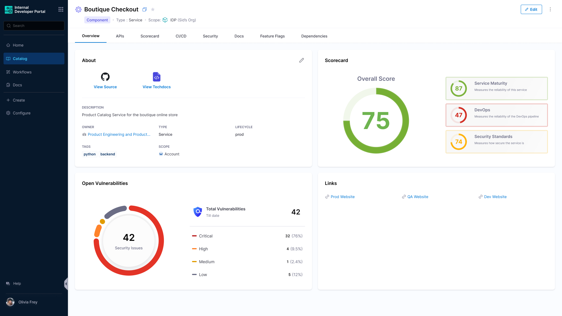 - External Content Integration - Add documentation, dashboards, or any web content directly in your IDP navigation
