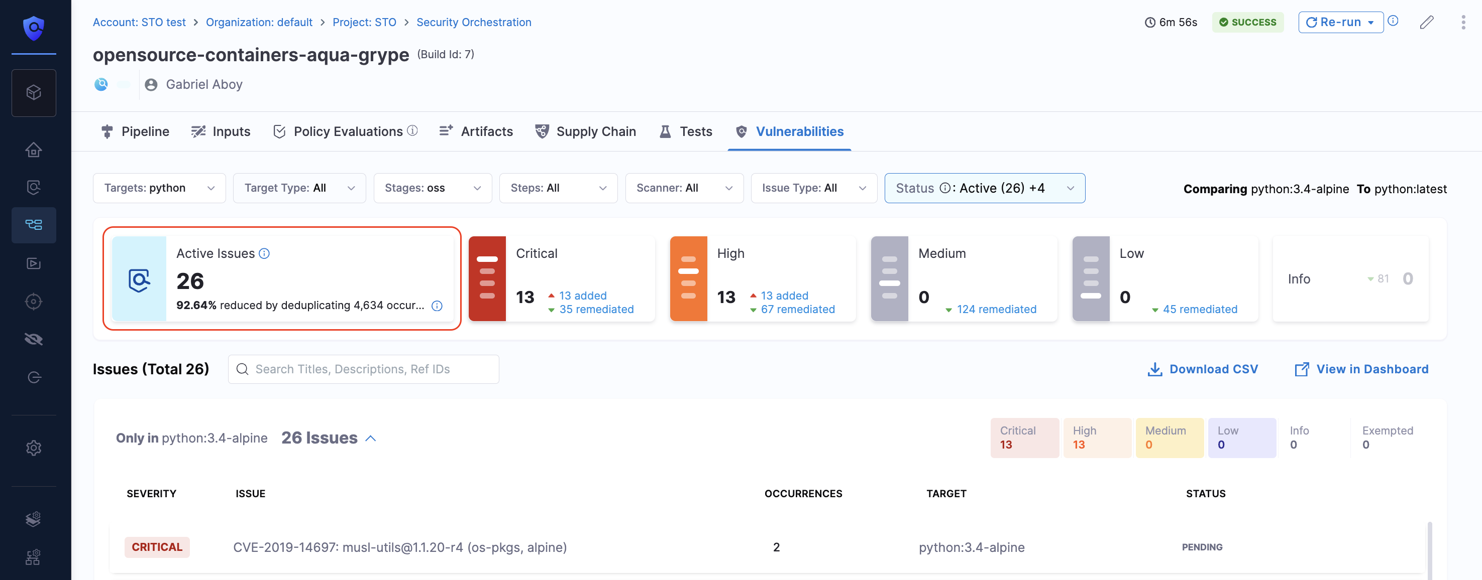 - Custom Dashboards & Reports: Ability to create custom visualizations and reports based on attributes related to STO and secure pipeline creation (40+ attributes).